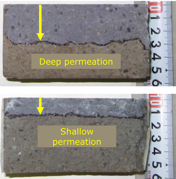 chloride ions. As is shown in Figure 4, the depth of permeation varies
