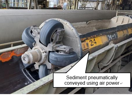 Among these, PWRI is participating in the latter two fields, where action is taken when countermeasures are deemed necessary. With regard to (2), studies are being conducted on actual dams to evaluate the applicability of new methods for efficiently and continuously transporting large volumes of sediment, including cost factors, as alternatives to dump trucks and belt conveyors generally used in the past. With regard to (3),studies are being conducted on auxiliary structures intended to form and maintain stable sedimentation geometry near gates, where sediment approaches discharge facilities and increases the risk of blockage . In both areas, hydraulic model experiments and numerical simulations are being used.
