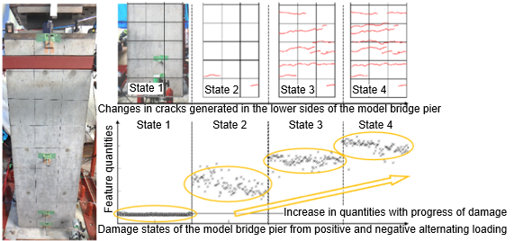 In a basic feasibility study conducted in fiscal 2024 on applying this approach to RC bridge piers, the progression of base damage was detected through changes in these features, as shown in Figure 2.