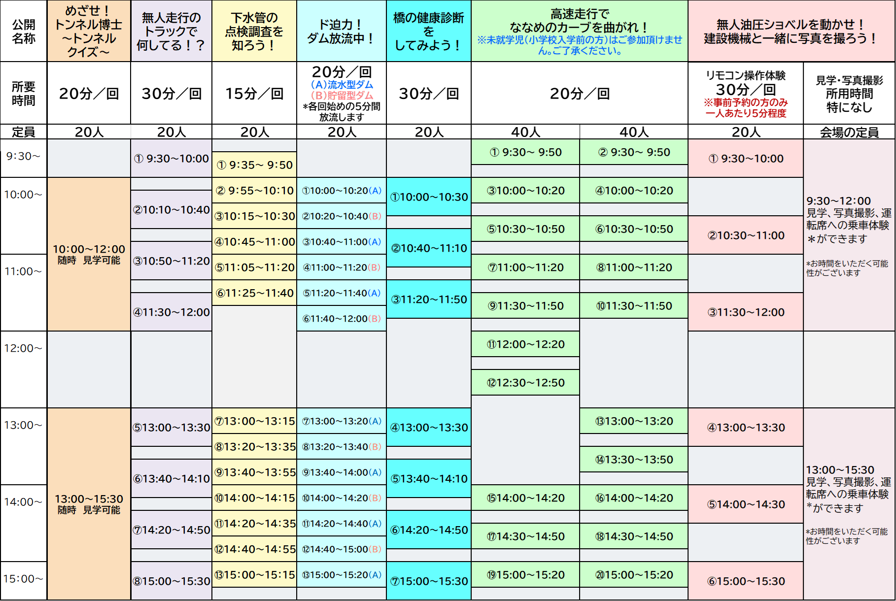 以下の施設見学・体験教室は事前予約が必要です。- 無人油圧ショベルを動かせ!建設機械といっしょに写真を撮ろう! ※