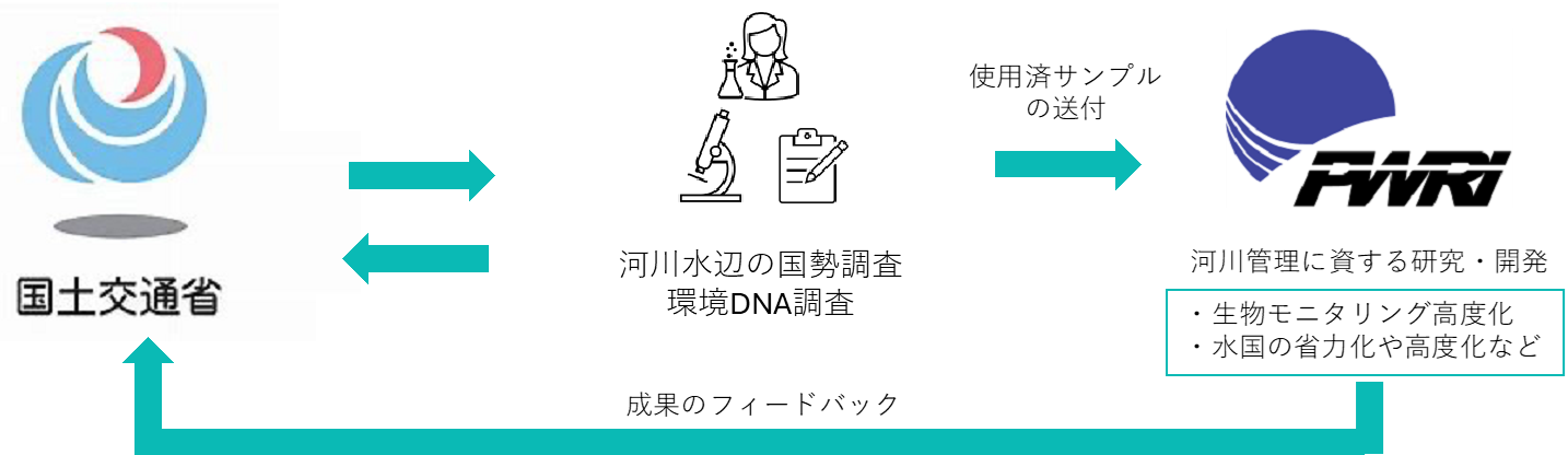令和8年度から導入される河川水辺の国勢調査における魚類環境DNA調査において、調査で発生する全国の悉皆的な河川の環境DNAサンプルを河川管理に資する研究開発を目的として土木研究所が収集する予定としています。